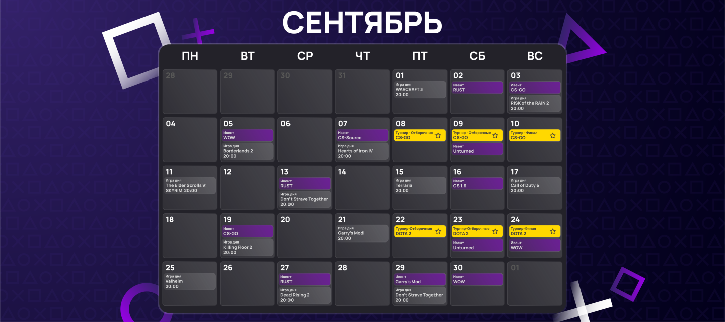 Мы рады представить вам календарь мероприятий на сентябрь! Не упустите шанс принять участие в эксклюзивных ивентах, которые мы организовали специально для вас. Невероятные приключения, захватывающие битвы ждут вас в этом месяце.