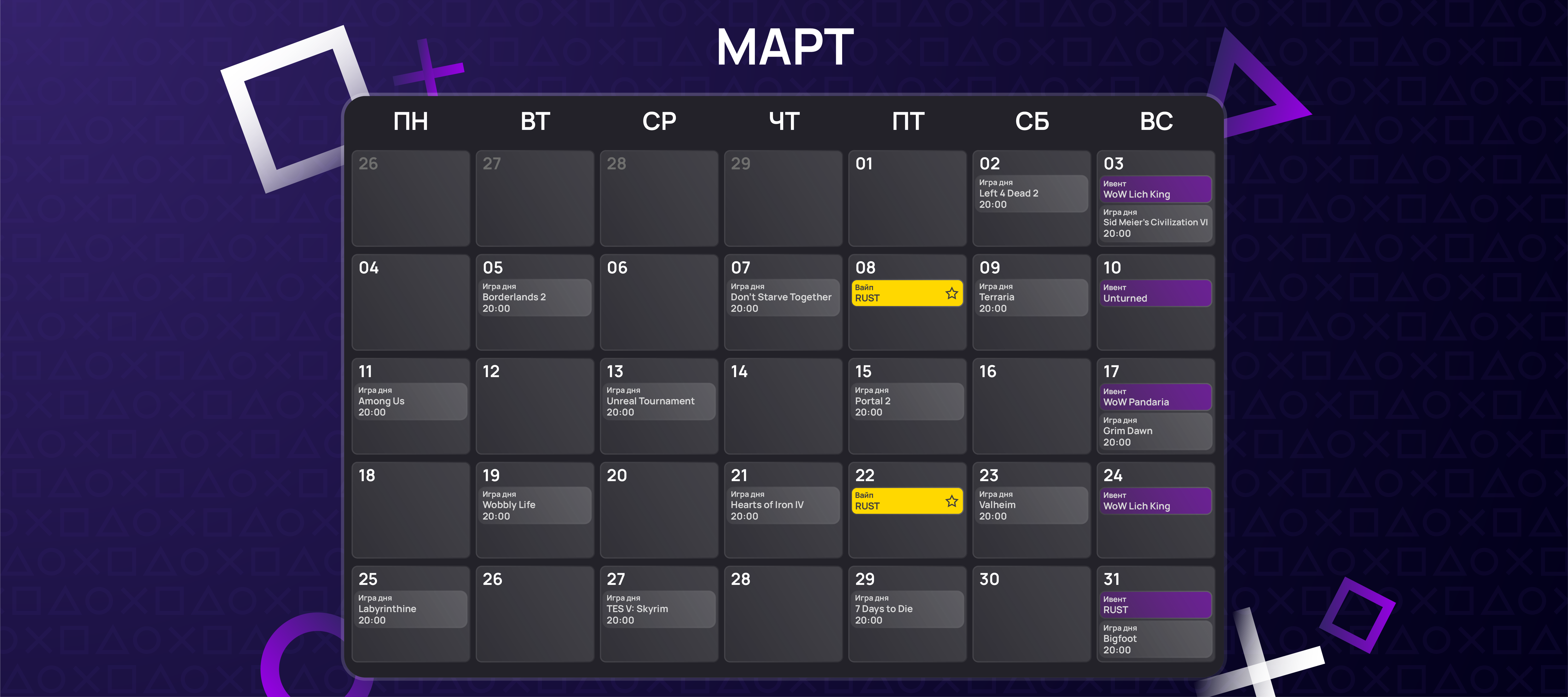 Календарь мероприятий на Март