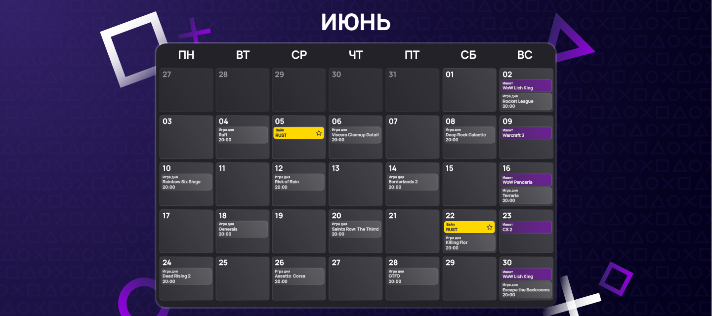 Календарь мероприятий на Июнь